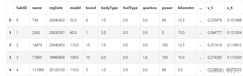 - v_0', 'v_1', 'v_2', 'v_3', 'v_4', 'v_5', 'v_6', 'v_7', 'v_8', 'v_9', 'v_10', 'v_11', 'v_12', 'v_13','v_14'(根据汽车的评论、标签等大量信息得到的embedding向量)【人工构造 匿名特征】