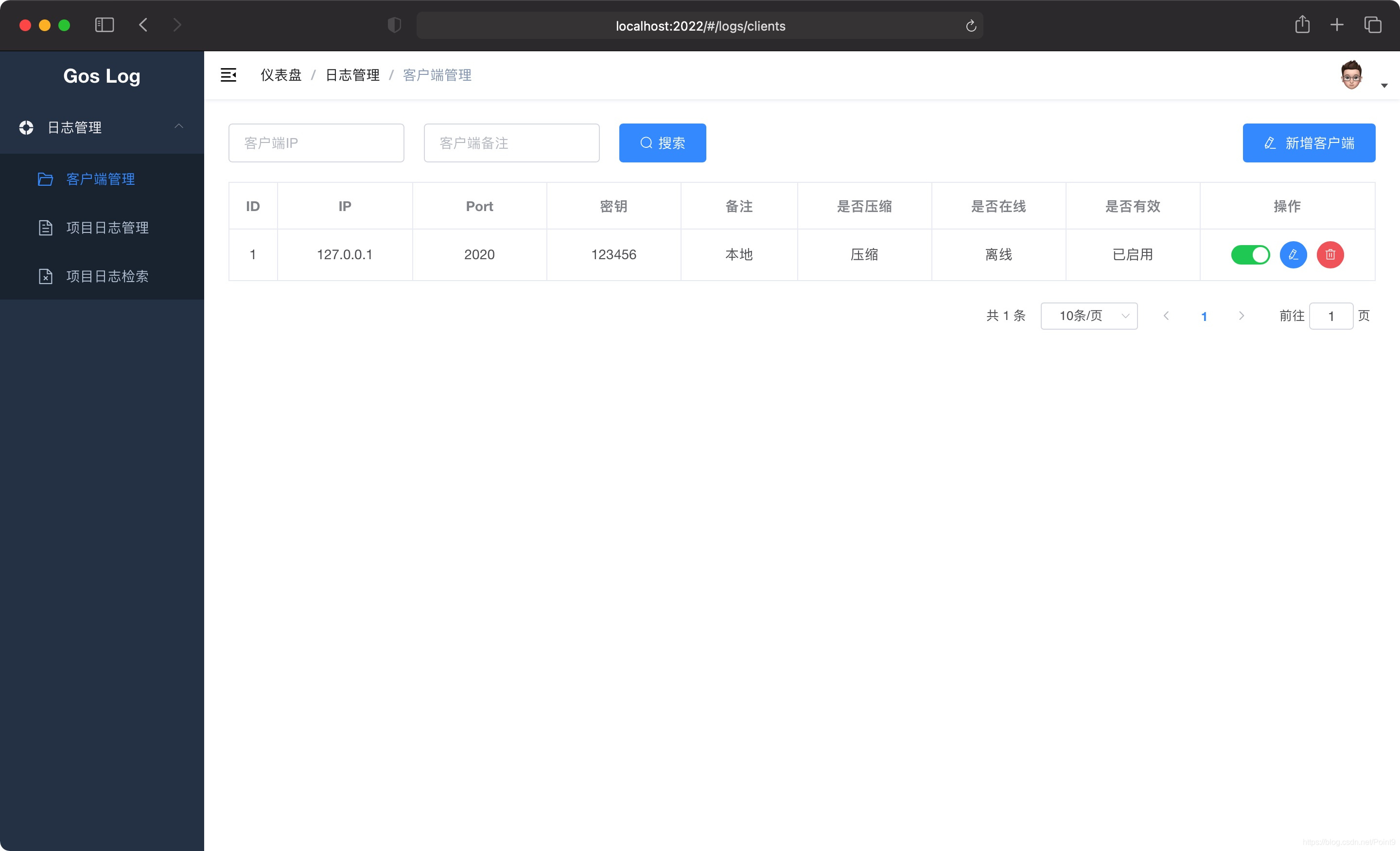 cd gos-log/logc #进入客户端