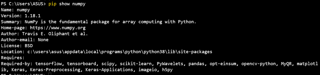 查询某个库一些基本信息,主要有版本号、Home Page、所在位置以及这个库的一些依赖(Requires):