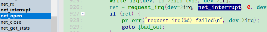-> dev->netdev_ops = &net_ops; /* net_device操作函数 */