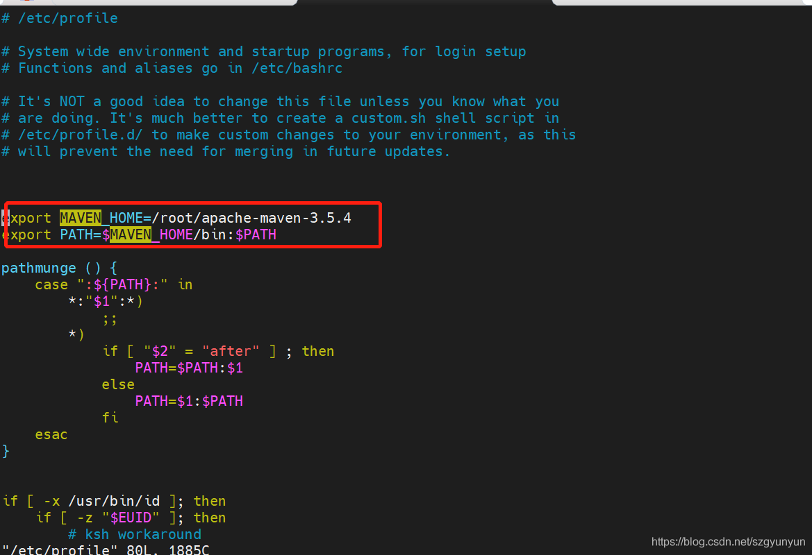 export MAVEN_HOME=/root/apache-maven-3.5.4 (这个目录换成你的 maven 解压后的文件所在目录)