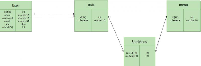 为了适应这种需求,我们可以把页面资源(菜单)和操作资源(按钮)分表存放,如上图。也可以把二者放到一个表里面存放,用一个字段进行标志区分。