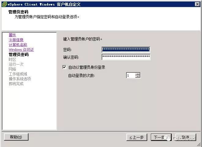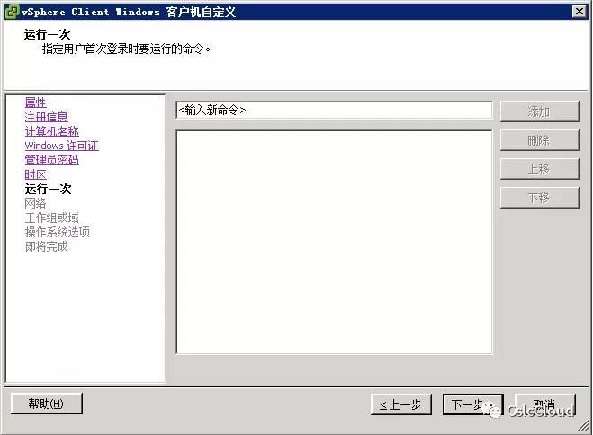 (可选) 在运行一次页面上,指定用户首次登录客户机操作系统时运行的命令,然后单击下一步。