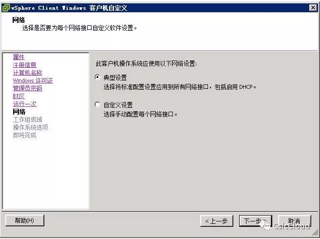 选择典型设置,使用过程中,用脚本修改规范中的网络相关信息