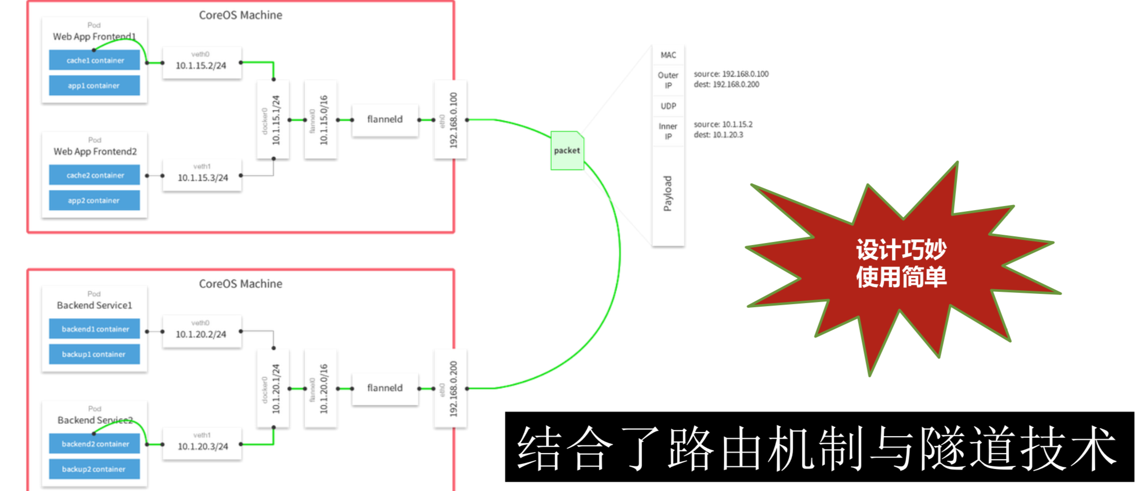 Flannel很新颖很不错 实际在可控的网络里,路由的方案则性能
