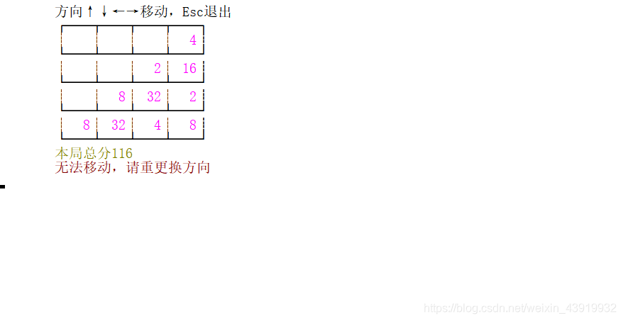 printf("\t方向↑↓←→移动,Esc退出\n");