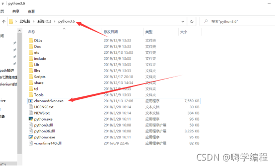第六步:将压缩包解压,将chromedriver.exe移动到 Python安装目录下(或者放项目文件夹也可以)