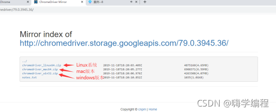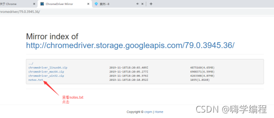第四步:找到对应版本后点击它计进入这个页面,点击notes.txt查看与Chrome版本是否对应。