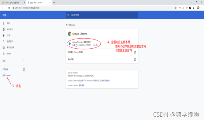 第二步:查看当前谷歌浏览器版本号