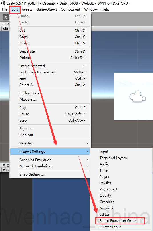 方法1:在Unity的Script Excution Order中设置脚本执行顺序