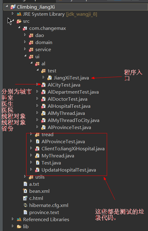 最近喜欢上了数据的庞大的感觉,就爬取了一下某个医疗机构网站医疗数据,由于数据量庞大,只爬取了江西省的各个市的各个医院的各个科室的各个科室。中各种信息。其中用的持久层技术是hibernate框架,和用到一些ioc技术。话不多说,上图。