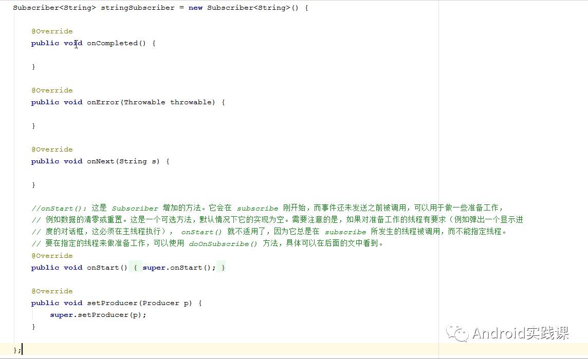 除了 Observer 接口之外,RxJava 还内置了一个实现了 Observer 的抽象类:Subscriber。 Subscriber 对 Observer 接口进行了一些扩展,但他们的基本使用方式是完全一样的: