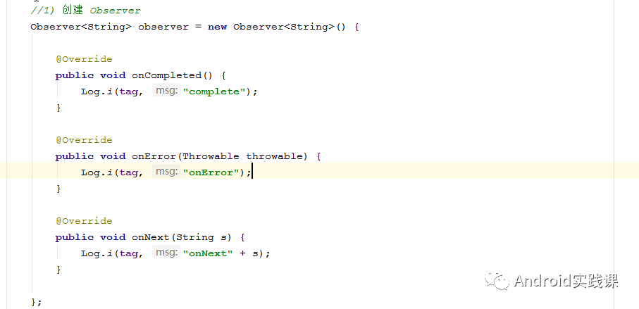 onCompleted(): 事件队列完结。RxJava 不仅把每个事件单独处理,还会把它们看做一个队列。RxJava 规定,当不会再有新的onNext()发出时,需要触发onCompleted()方法作为标志。onError(): 事件队列异常。在事件处理过程中出异常时,onError()会被触发,同时队列自动终止,不允许再有事件发出。在一个正确运行的事件序列中,