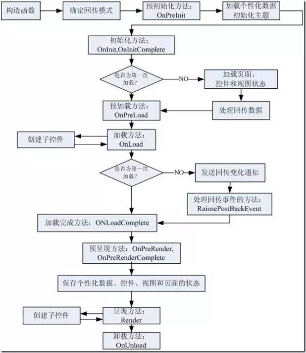 当我们在浏览器地址栏中输入网址,回车查看页面时,这时会向服务器端IIS)发送一个request请求,服务器就会判断发送过来的请求页面,当完全识别 TTP页面处理程序类后,ASP.NET运行时将调用处理程序的 ProcessRequest 方法来处理请求、创建页面对象。通常情况下,无需更改此方法的实现,因为它是由 Page 类提供的。接下来被创建页面对象的ProcessRequest方法使页面经历了各个阶段:初始化、加载视图状态信息和回发数据、加载页面的用户代码以及执行回发服务器端事件。之后,页面进入显示模式:收集更新的视图状态,生成 HTML 代码并随后将代码发送到输出控制台。最后,卸载页面,并认为请求处理完毕。其中页面对象ProcessRequest方法 完成的这一系列事件的处理过程就是Asp.Net页面生命周期。