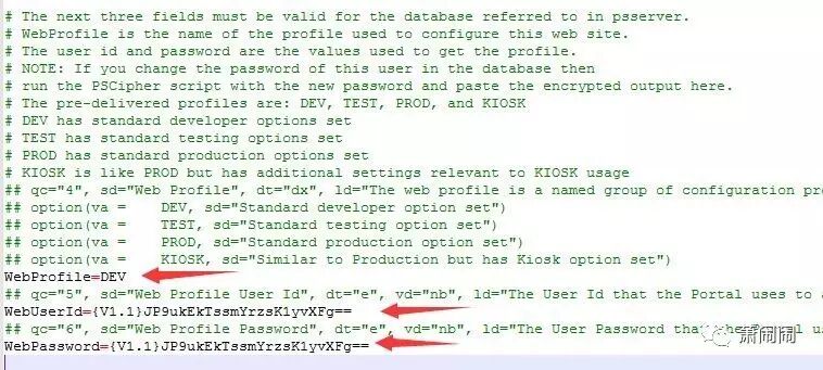 在安装PIA时候,会提示使用哪个web概要,还需要填写userid 和password,这些信息都存储在configuration.properties的文件里目录如下:/opt/psoft/Domain/webserv/HR92DEV/applications/peoplesoft/PORTAL.war/WEB-INF/psftdocs/ps/configuration.properties
