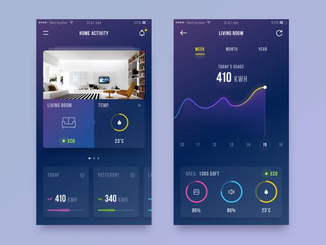 信息图在Gleb Kuznetsov的智能家居应用上的互动体验