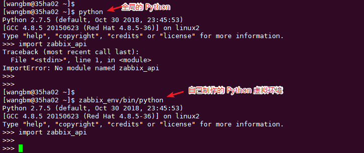可以看到路径 /home/wangbm/.local/lib/python2.7/site-packages 是优先于 /usr/lib64/python2.7/site-packages 路径的。