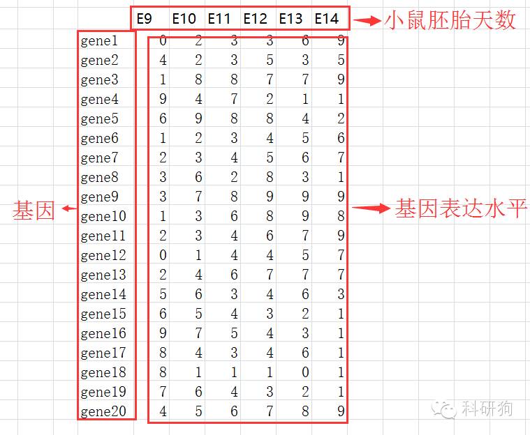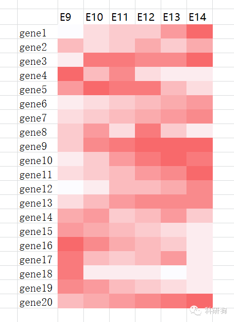 11. 通过热力图我们能直观地分析出这些基因在胚胎发育期间的变化规律,有的是随着胚胎的时间逐渐下降,有些是随着时间逐渐上升,还有些没有太多的规律。我们还可以把同一趋势的归类,做出更加漂亮的热力图。