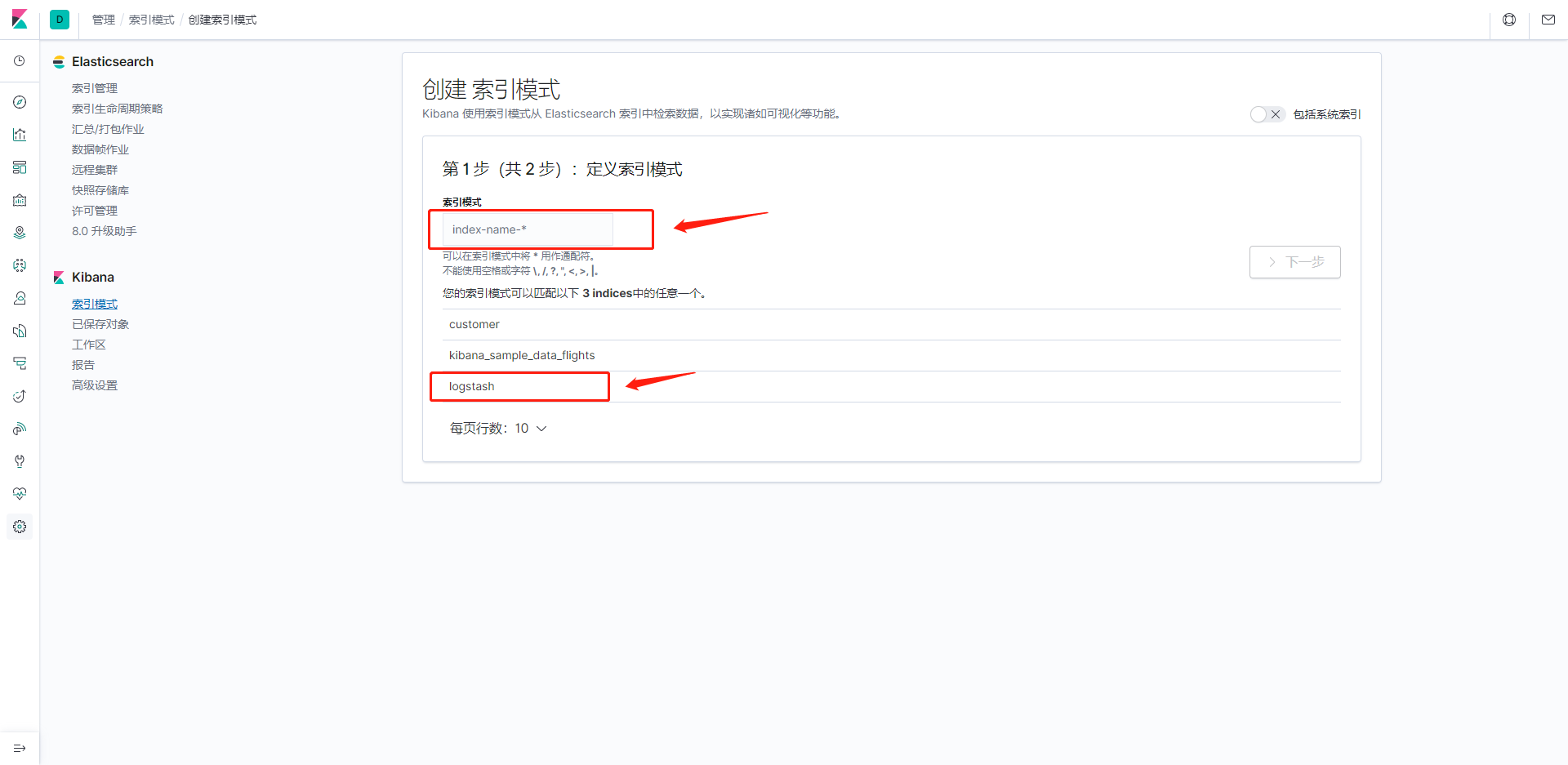 下面会列出来Elasticsearch 中可用的索引,选择logstash,下一步,配置时间索引,点击完成就OK啦。