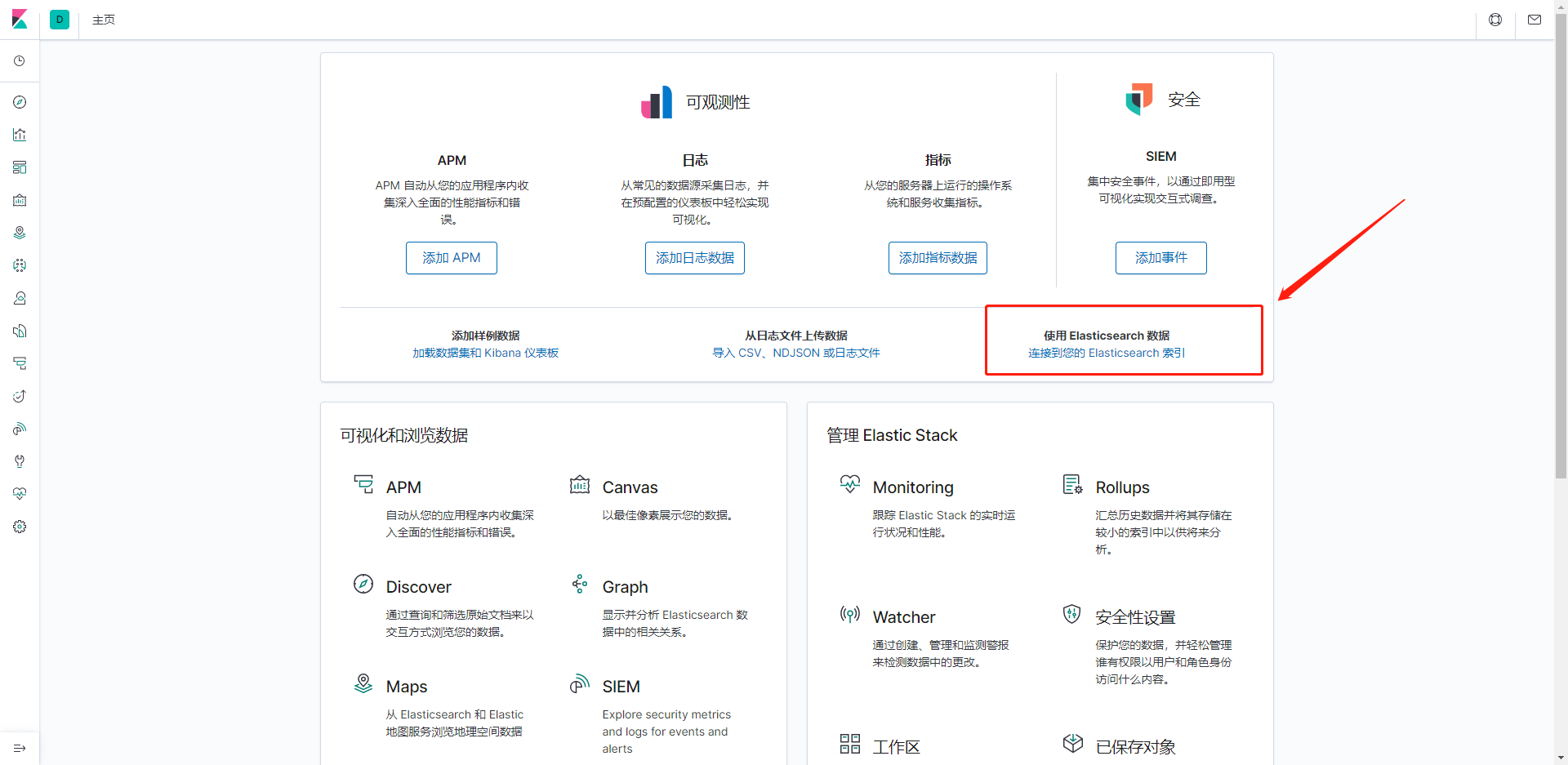 在浏览器中输入地址:http://IP:5601就可以啦!不过第一次进入可能会很慢。