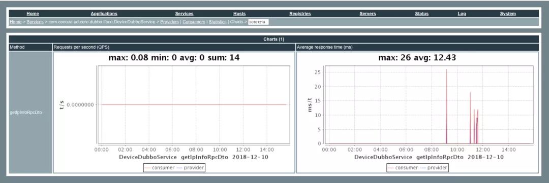 经过几天的时间修改了部分源码搭建起来的监控平台,目前已经在生产上使用了。从目前的服务调用来看,效果还可以。前期搭建的过程中还是踩了不少坑的,由于 dubbo 的版本复杂,网上多种监控平台各有各的特点, 权衡了很久才决定还是用官方的监控平台。