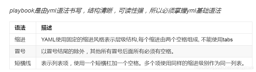 3.playbook的配置语法是由yaml语法描述的,扩展名是yaml