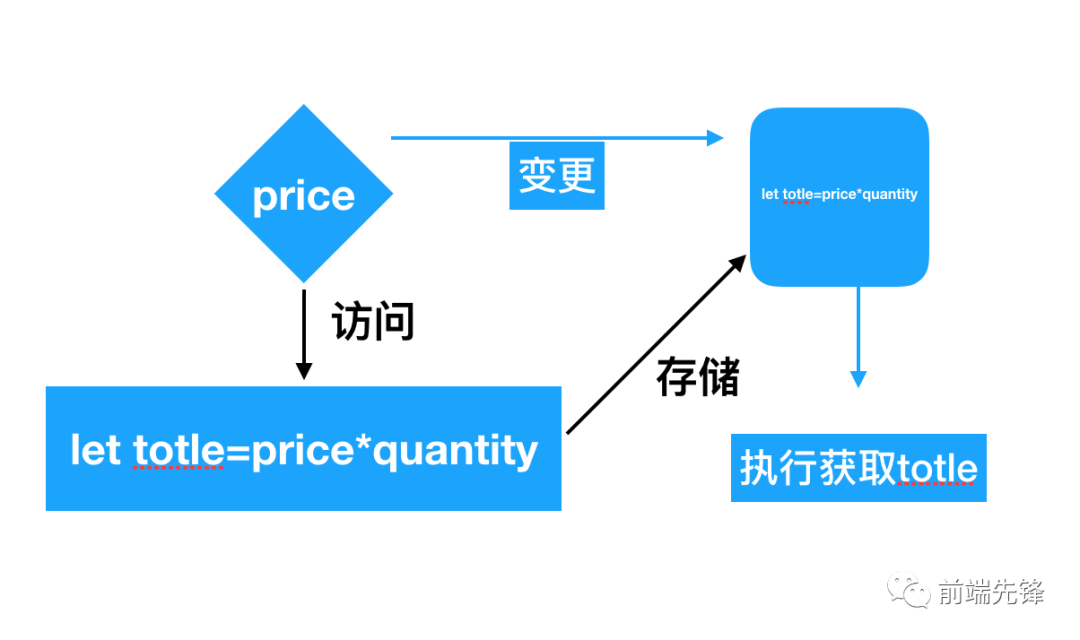 在咱们经常使用的Vue中,我们想要在price或者quantity这两个字段更新时,和它有关的表达式也会更新,和它有关的函数也会执行。