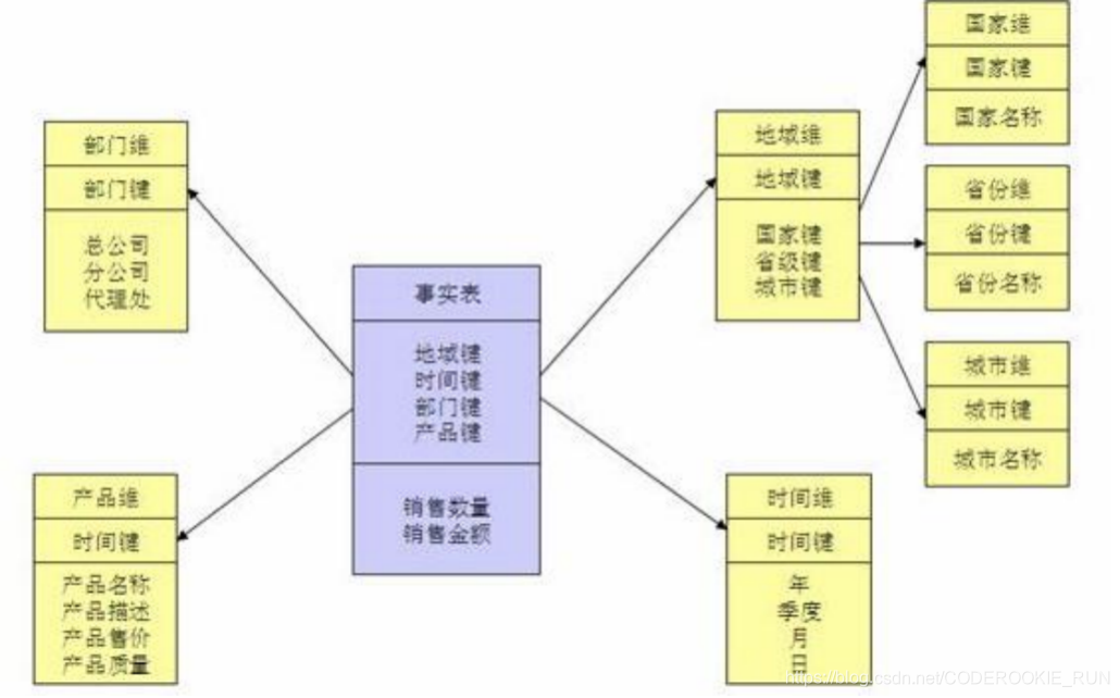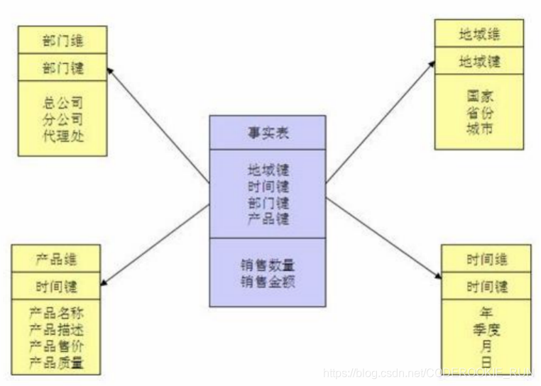 3.以事实表为核心,维表围绕核心呈星形分布