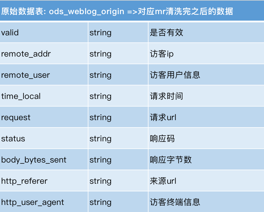 - 原始日志数据表
