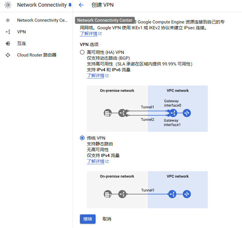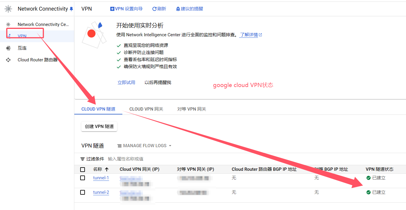 1:回到第一步创建Google Cloud 创建IP的界面(Network Connectivity->VPN)