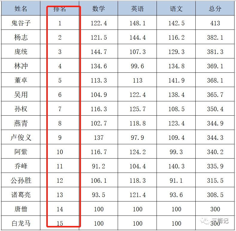 第一种排名:排名不重复,有N名同学,从1依次排到N。