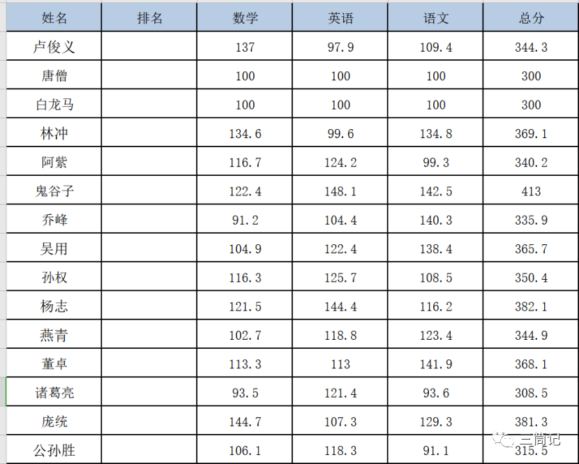 - 按要求给出每位同学的排名,有并列排名,占用名次,N名同学,排名1到N,如果有相同数值,则名次不连续。