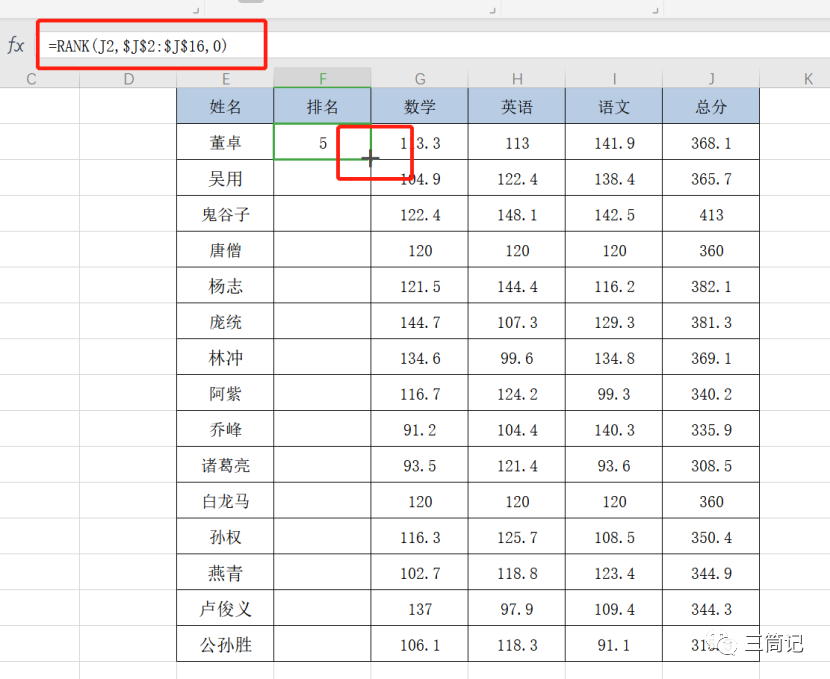 - 第一步:在F2单元格英文状态下输入:=RANK(J2,$J$2:$J$16,0)。