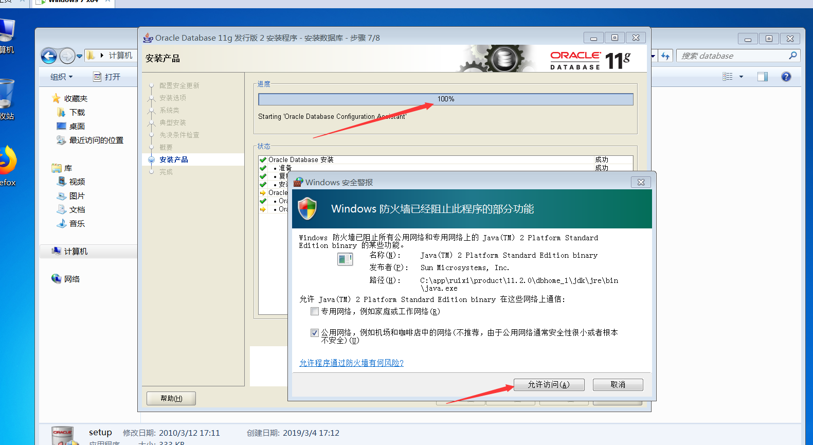 如果出现下面的图就是安装成功了,允许访问就可以了