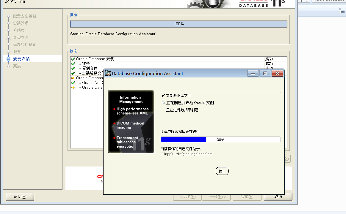 然后,在上图点击完成就可以进行安装了。正在安装,如下图