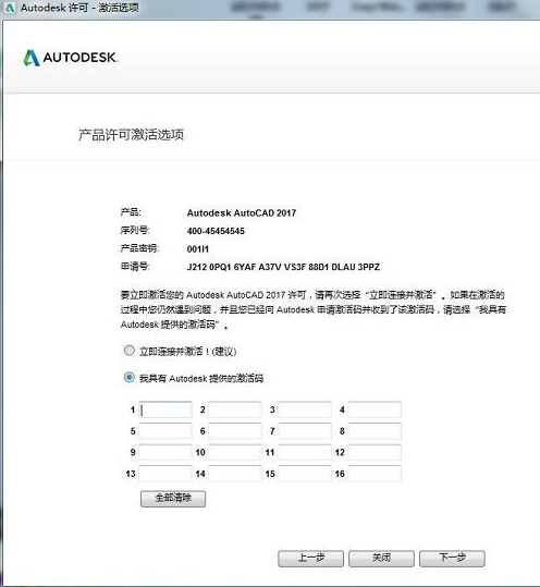 1、拔掉网线之后,打开桌面上的Autocad 2017快捷方式,在弹出的界面中点击“输入序列号”