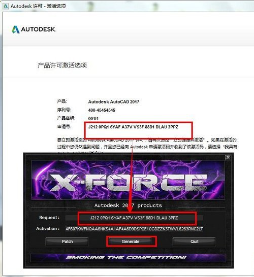 7、之后回到刚才的安装界面,复制安装界面当中的申请号,然后将其复制到注册机的Request栏中,并点击Generate(生成)