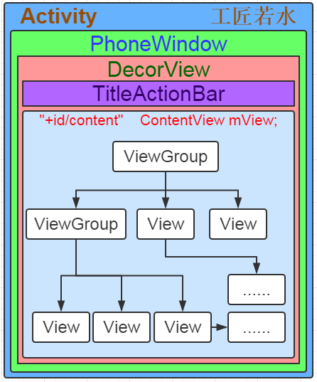 这里是整个Activity的层级,最外面一层是我们的Activity,它包含里面的所有东西。