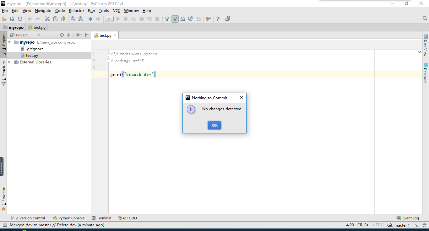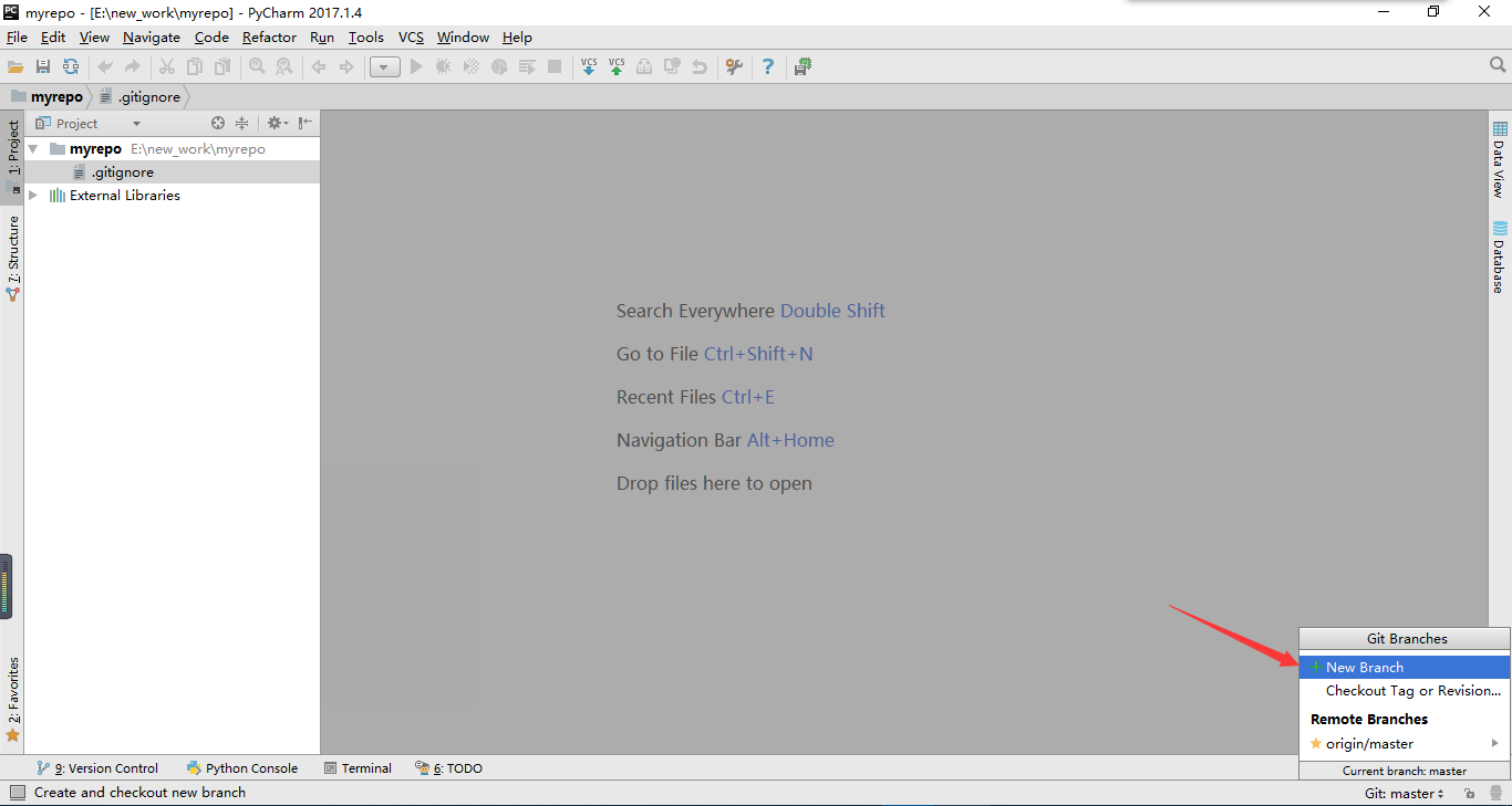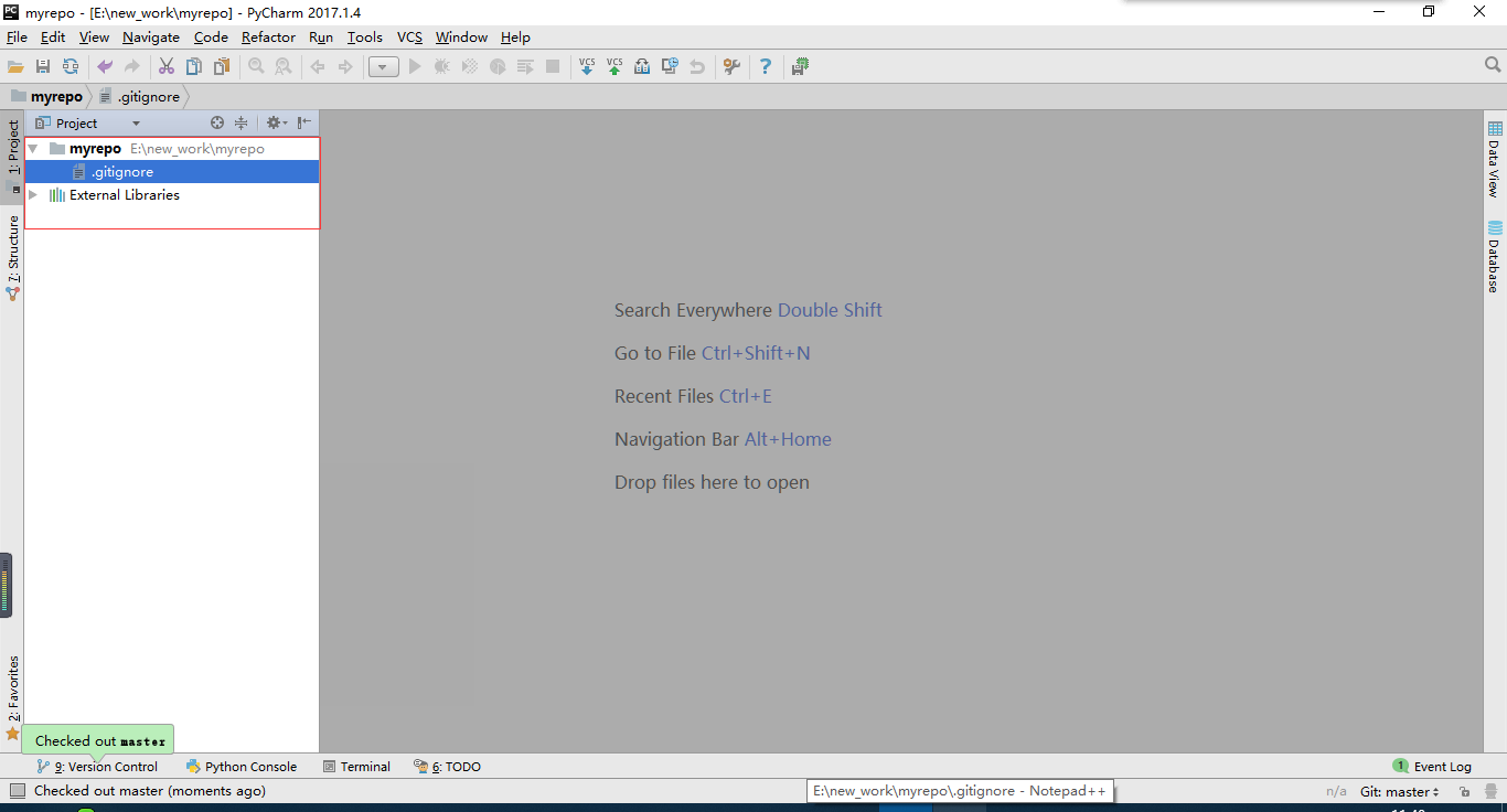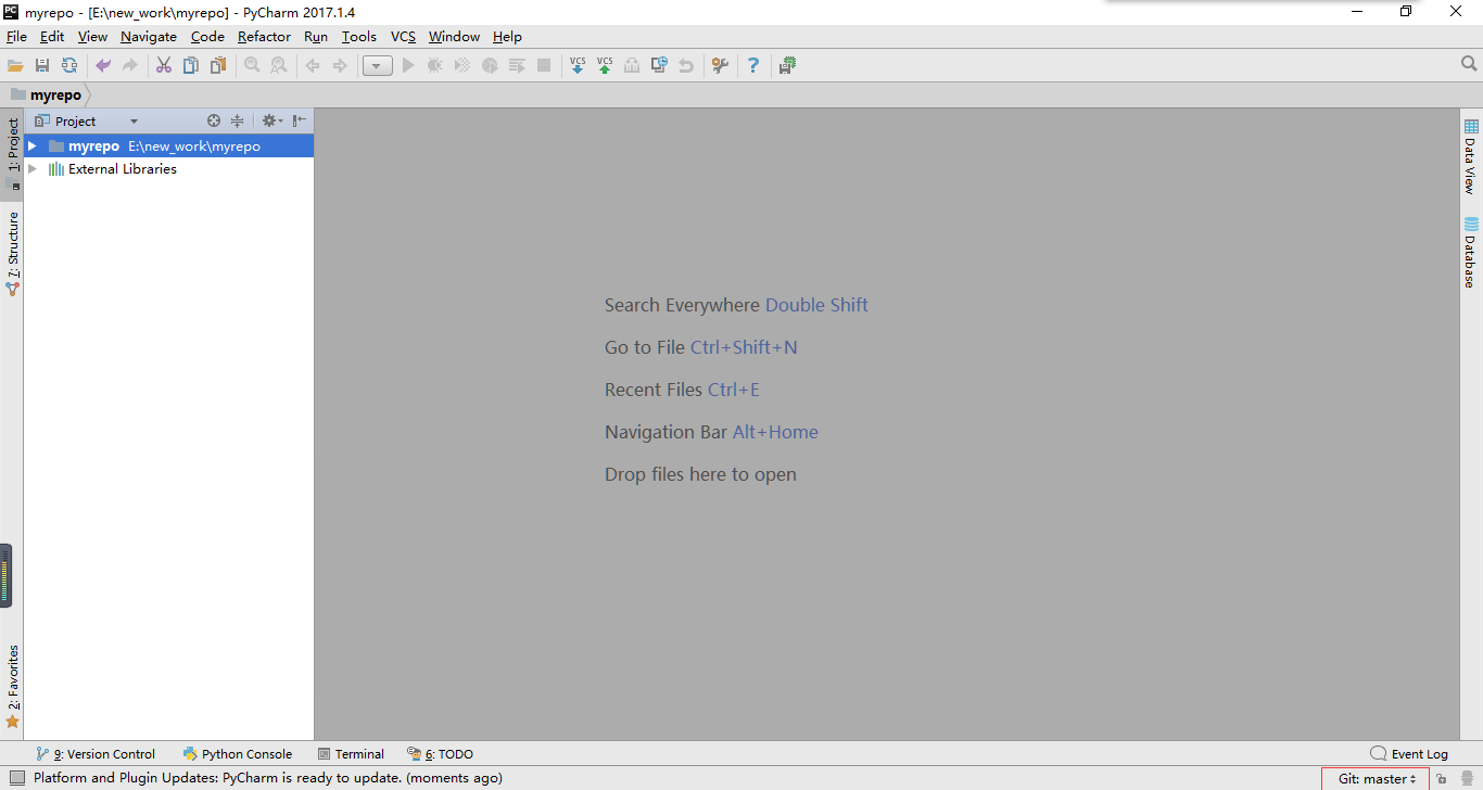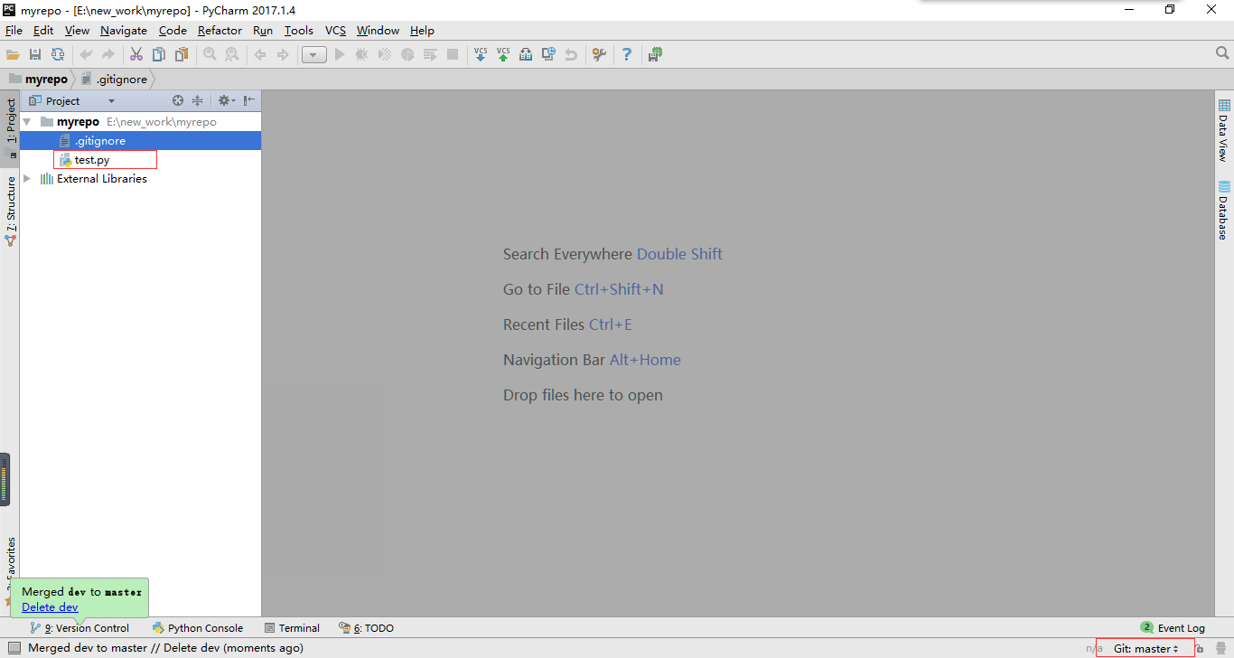 可以看到右下角的Git:master,说明项目已经被git管理了。