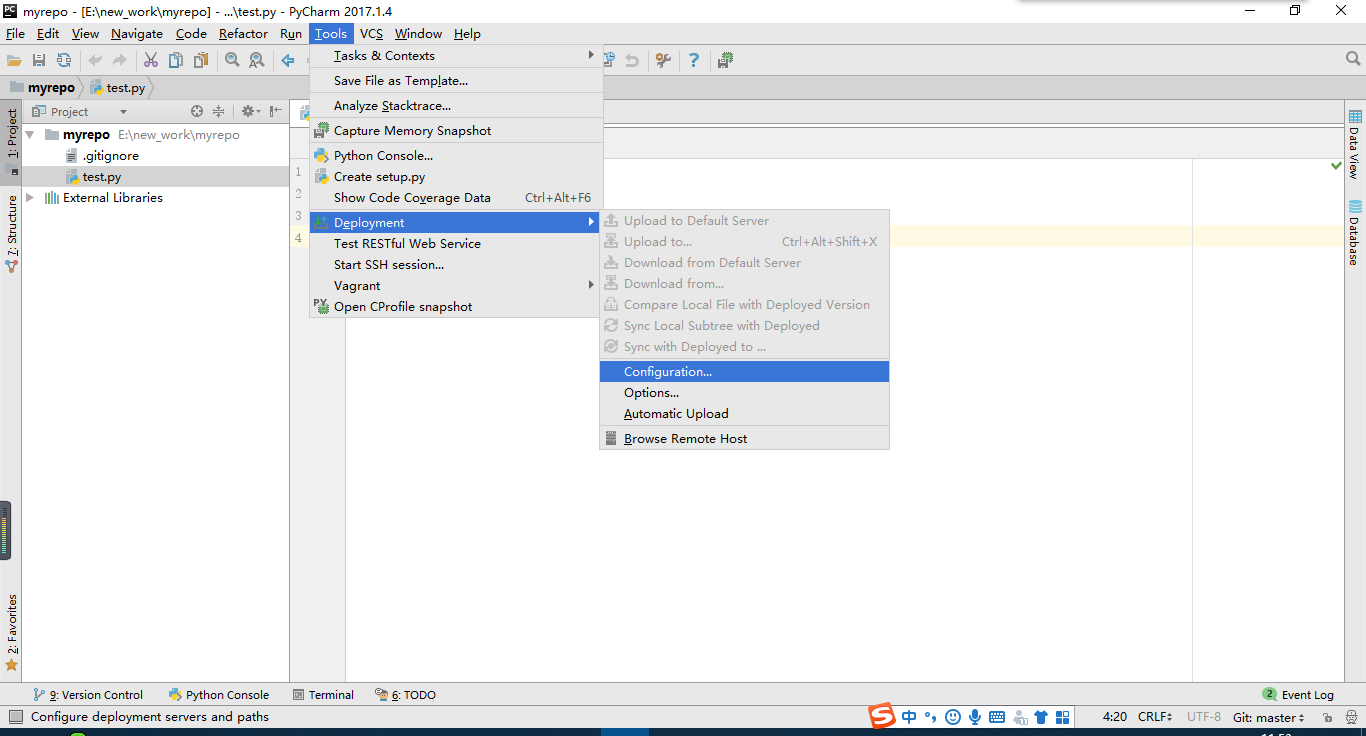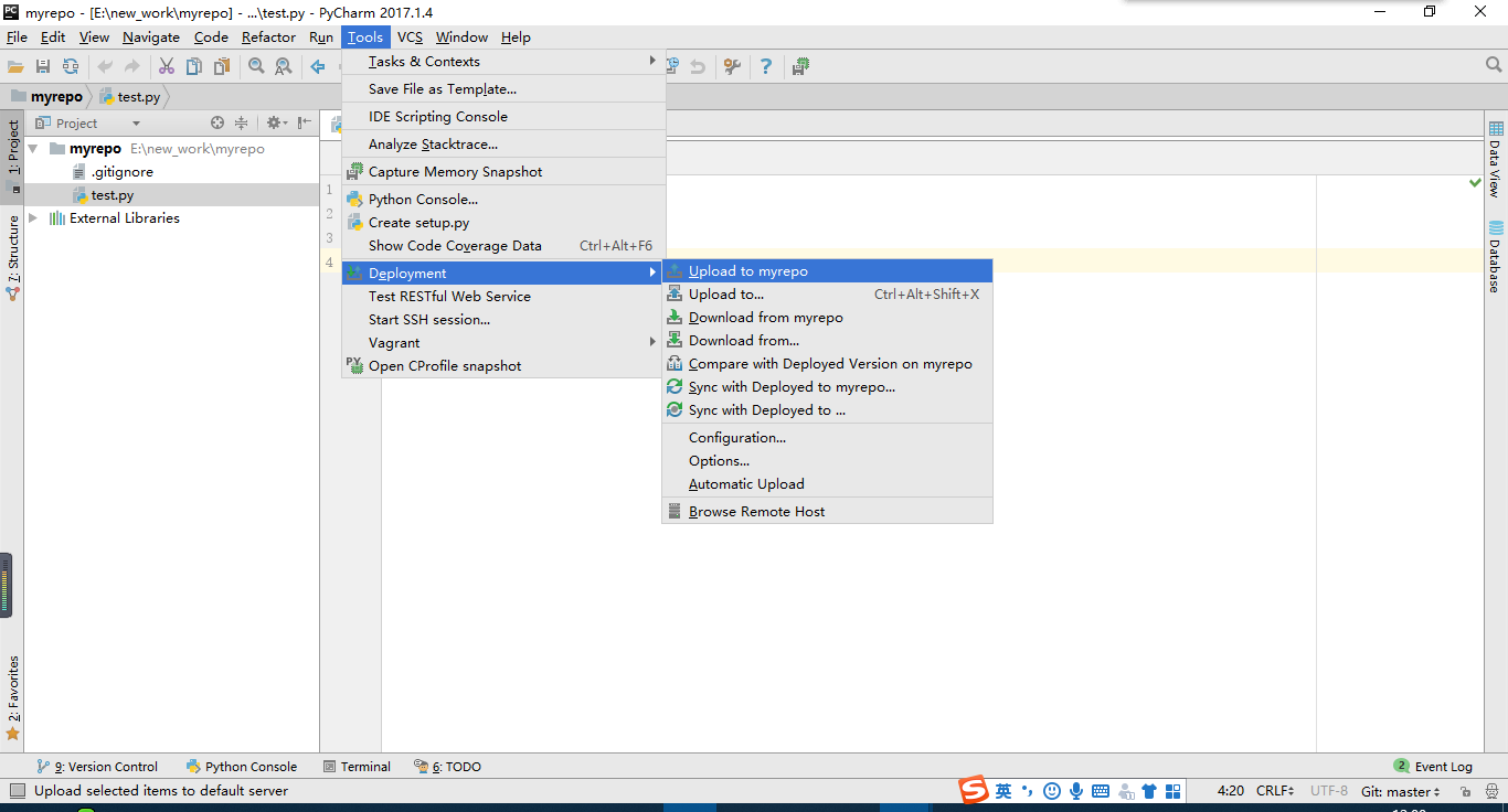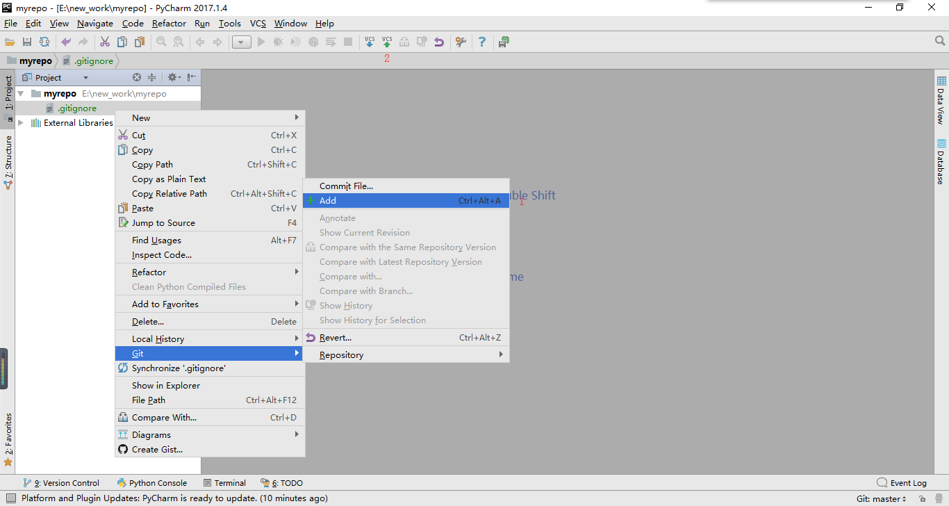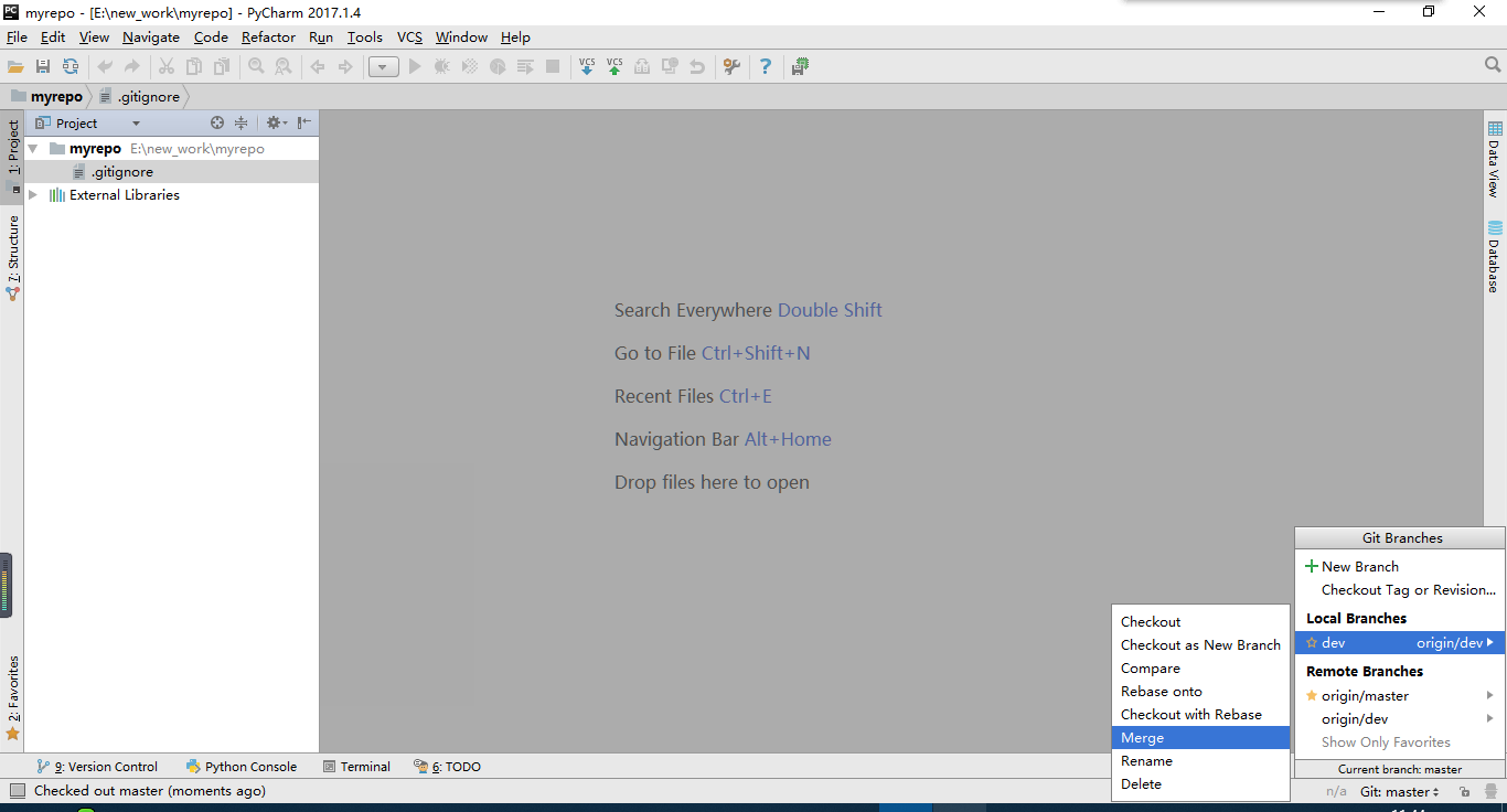 可以看到右下角的Git:master,说明项目已经被git管理了。