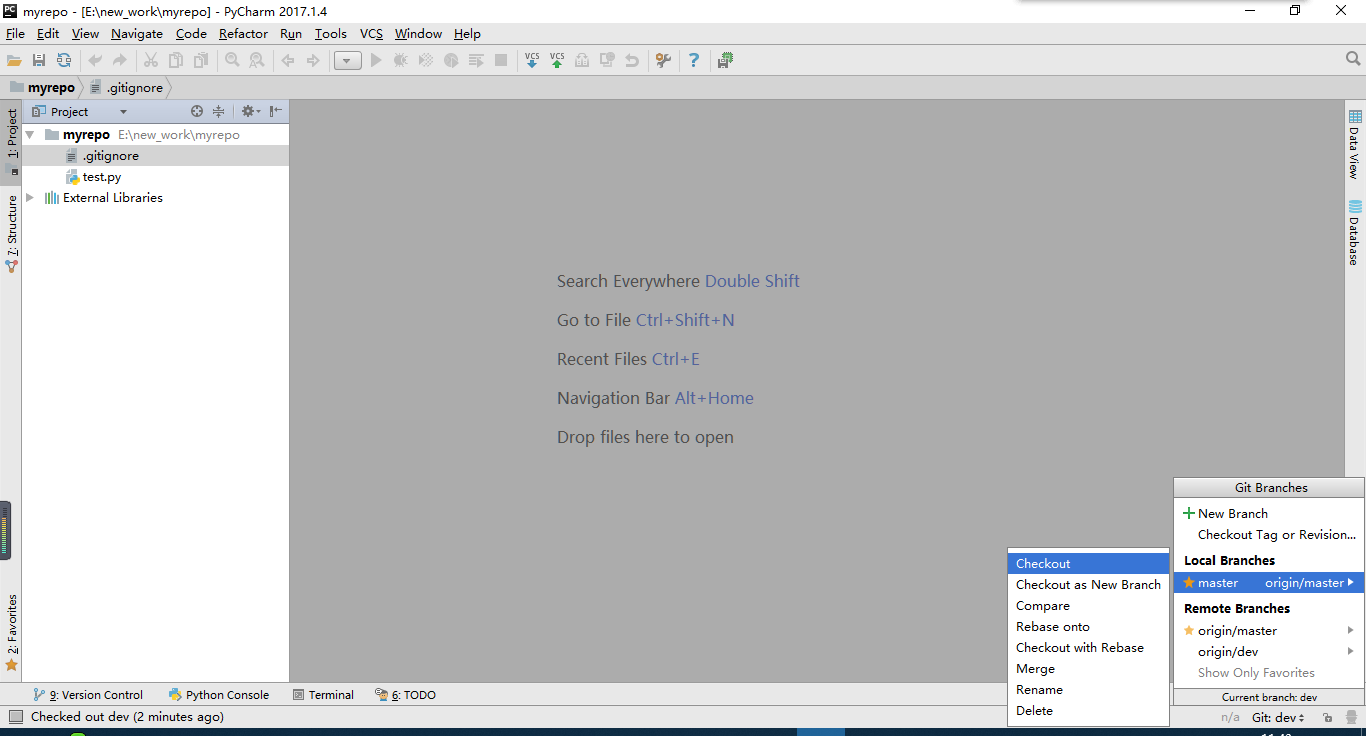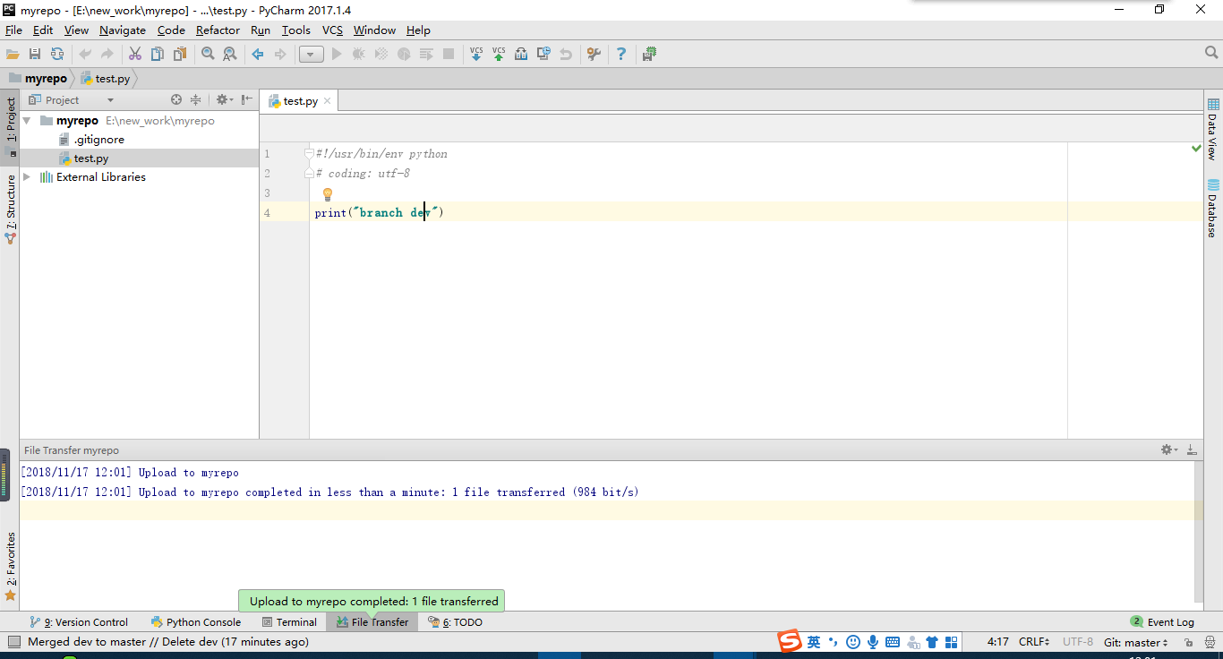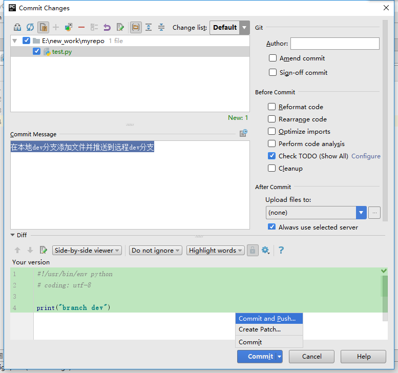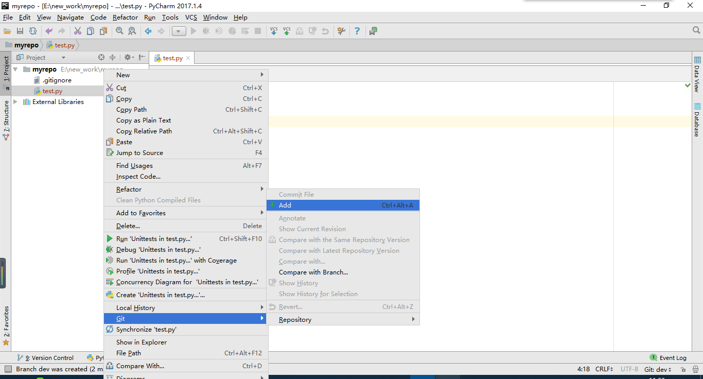 1.7 在dev分支添加文件,并提交到本地dev分支,推送到远程dev分支