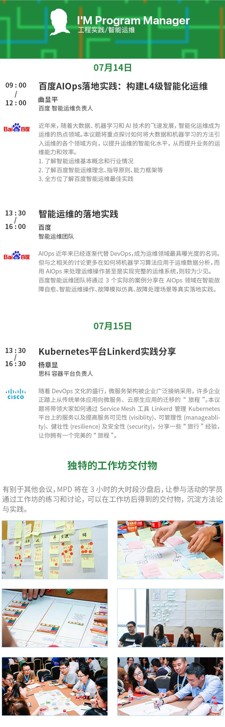 另外,在即将于7月14-15日举办的北京MPD工作坊上,我们也为大家准备了Kubernetes、Service Mesh等相关话题,我们一起来看看。