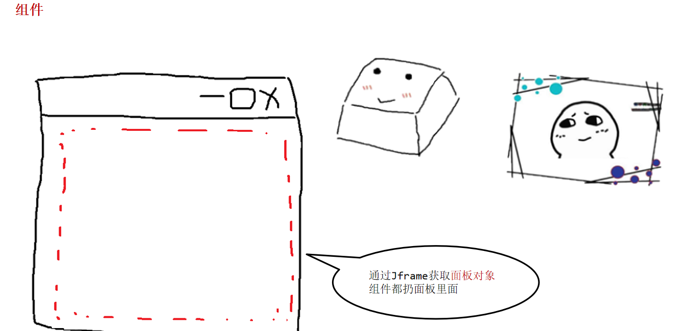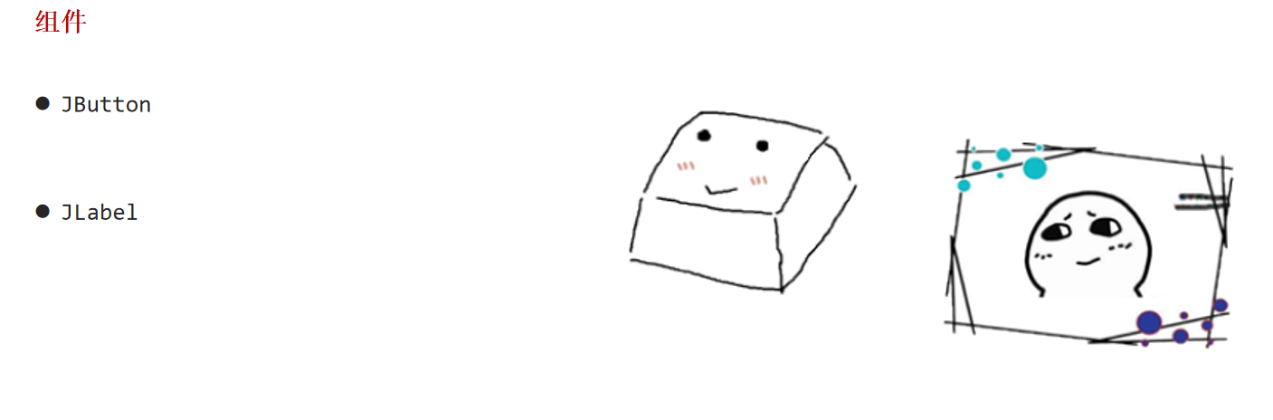 其中按钮对象是JButton,图片和文本对象是JLabel
