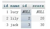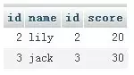 left join查询出来的结果和前表记录数一样多,后表如果没有对应记录,则列为空: