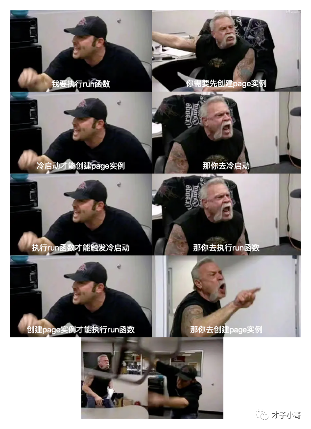 可能会有人说,那就加个限制,page实例不存在时也不让run函数执行不就得了?这么做的话run函数永远都不会被执行啊大聪明。