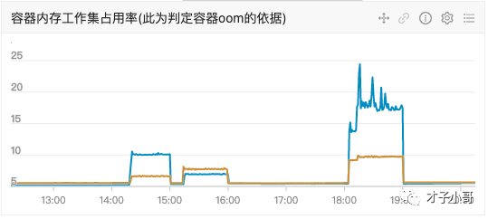 服务器的CPU曲线相对平缓符合预期,但是在某些时刻内存有非常明显的尖刺,比如下图中18点10分左右: