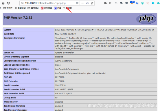 http://your-ip/index.php 中是一个白名单检查文件后缀的上传组件,上传完成后并未重命名。我们可以通过上传文件名为xxx.php.jpg或xxx.php.jpeg的文件,利用Apache解析漏洞进行getshell。