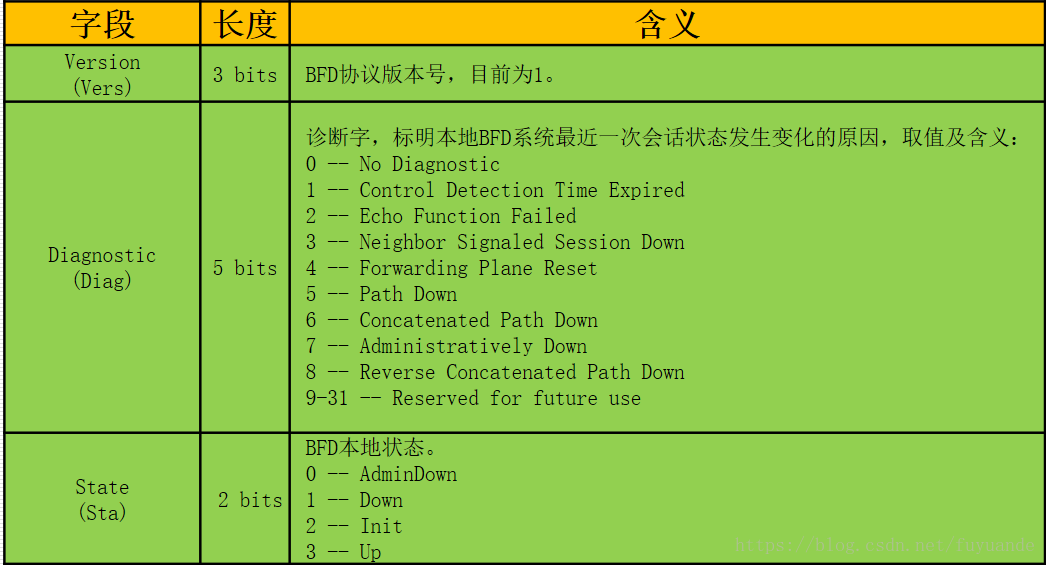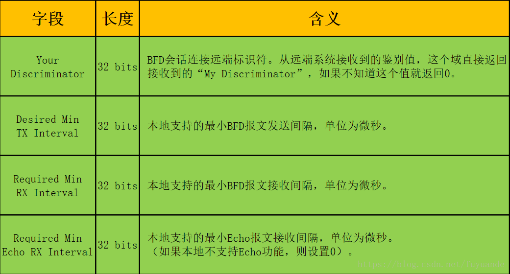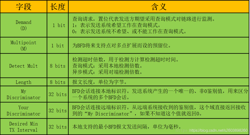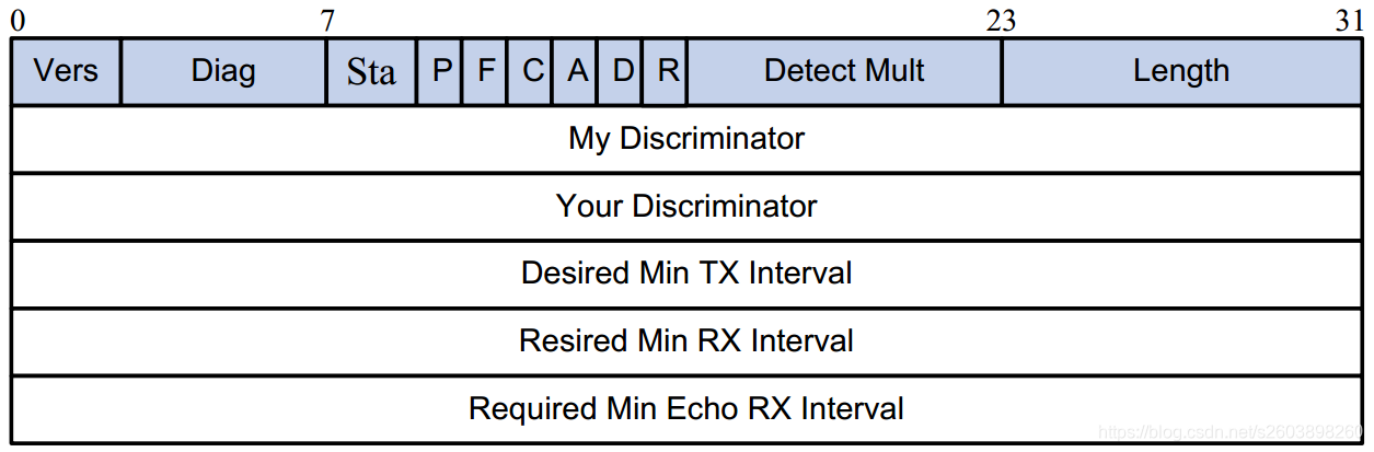 Echo报文的格式进行定义,唯一的要求是发送方能够通过报文内容区分会话。BFD