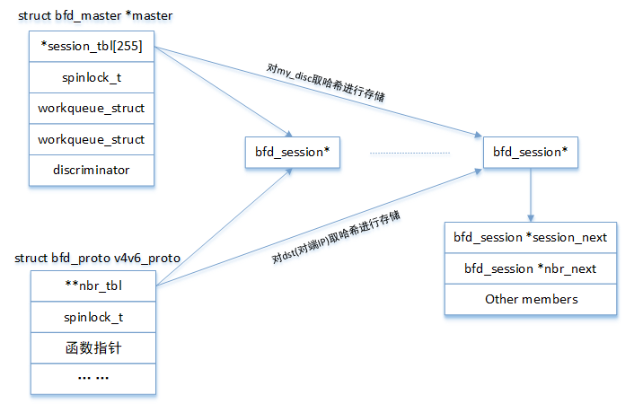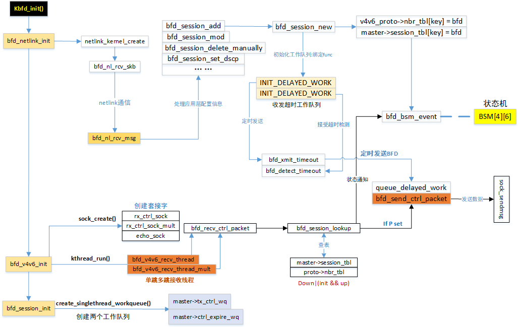 这个系统架构包括有四部分组成(实际使用过程中,而不是纯BFD协议)。架构图如下: