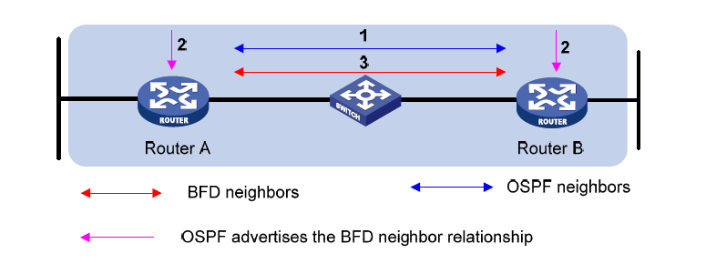 (2) OSPF在建立了新的邻居关系后,将邻居信息(包括目的地址和源地址等)通告给BFD。